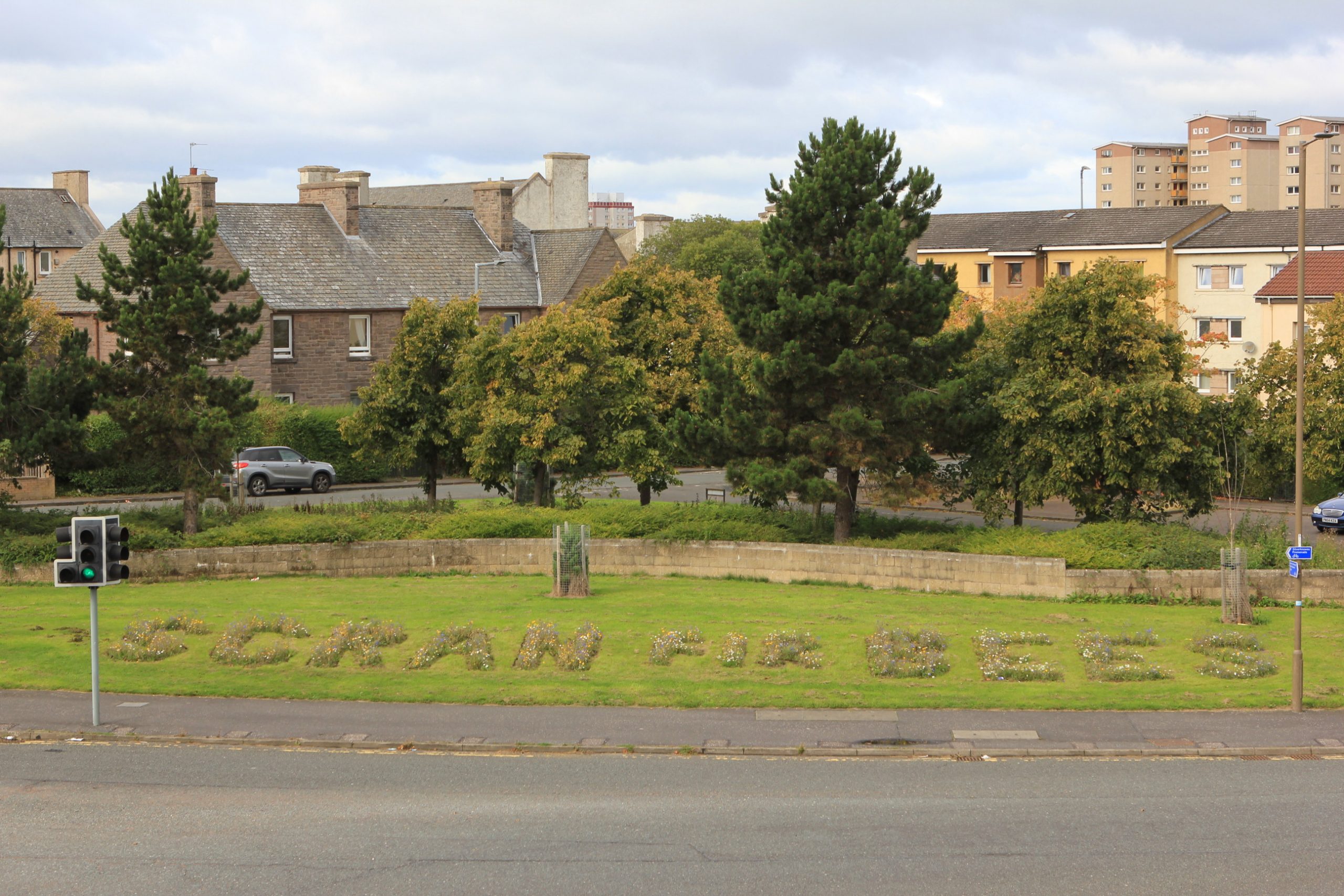 Wildflower slogans written into the landscape in
